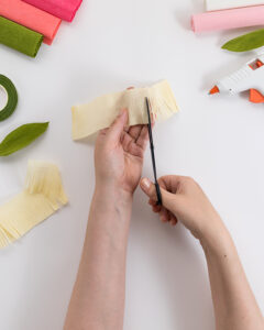 DIY: Pfingstrosen aus Krepppapier — Staubfäden einschneiden: Fransen schneiden | we love handmade