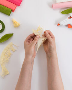 DIY: Pfingstrosen aus Krepppapier — Staubfäden vorbereiten: Fransen zwirbeln | we love handmade