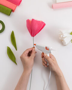 DIY: Pfingstrosen aus Krepppapier — Blatt anbringen | we love handmade