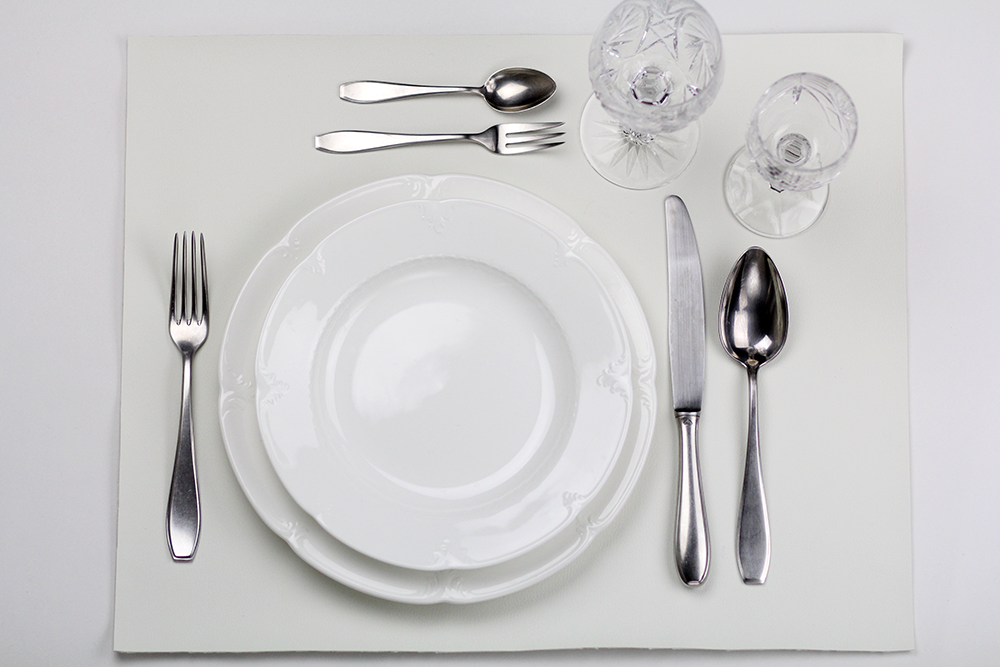Aus synthetischem leder ein 40 cm x 50 cm großes Rechteck schneiden. Fertig ist diese wiederverwendbare Unterlage, die jedem Dinner einen edlen Touch verleiht.