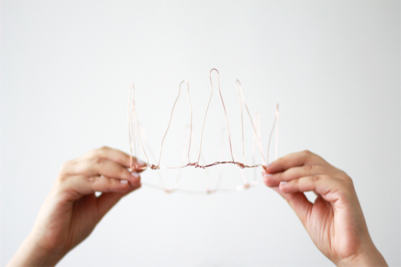 Die beiden Enden werden ein paar Mal umgebogen, so hält der Drahtkreis und sitzt gut auf eurem Kopf.