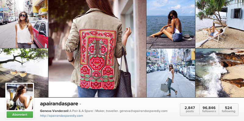 Die Australierin Genevieve Vanderzeil gewährt uns nicht nur Einblicke in ihre DIY Welt, sondern nimmt uns auch auf ihre Reisen mit. 2012 brachte sie ihr erstes Buch „DIY Fashionista“ auf den Markt und nach ihrem London Aufenthalt lebt sie nun schon seit knapp vier Jahren in Hong Kong, wo sie dieses Jahr auch ihr a pair and a spare studio eröffnete.