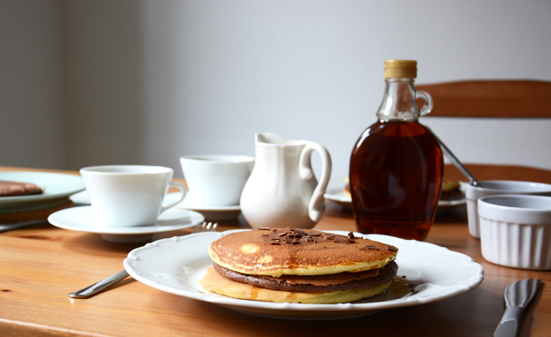 Wochenenden sind dazu da, einfach mal nichts zu tun, außer natürlich lange zu schlafen und ausgiebig zu brunchen. Aus diesem Grund haben wir dieses Mal eine köstliche Idee für das bevorstehende Wochenende: Zweierlei Pancakes. Einmal mit Schokolade und einmal mit Zitrone und Vanille. Dazu gibt’s selbstgemachte Marmelade und natürlich Ahornsirup. Klingt köstlich, oder? Hier die Rezepte zum Nachmachen: