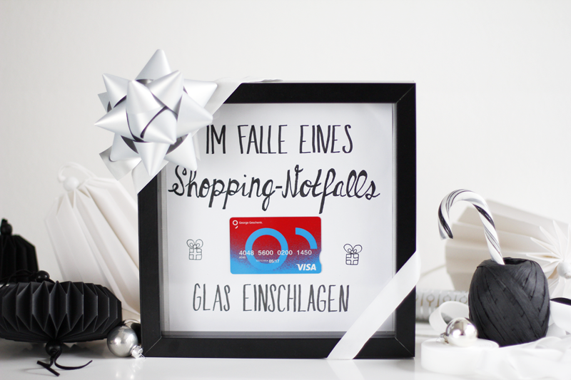 Geldgeschenke und Geschenkkarten sind eigentlich, seien wir uns mal ehrlich, eher langweilige und einfallslose Geschenke, die zu Weihnachten meist in einem tristen Umschlag, oder maximal in einer gekauften Weihnachtskarte unter dem Christbaum liegen. Super fad. Doch das muss nicht sein! Denn auch Geldgeschenke lassen sich mit ein wenig Aufwand wunderschön und originell verpacken. Wir zeigen euch wie’s geht und haben die Geschenkkarte von George für Shopping-Notfälle verpackt!