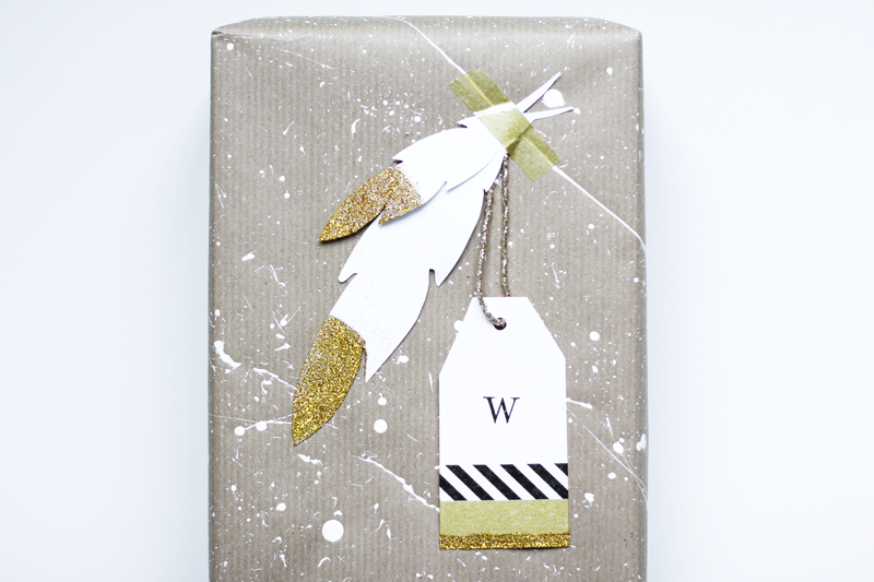 Wie bei den Papierfedern die Glitzerpartikel auftragen und wie abgebildet mit einer Schnur am Geschenk anbringen. Wir würden uns übrigens sehr über Bilder eurer eingewickelten Packerl freuen. Schickt uns entweder eine Nachricht oder teilt sie auf Facebook, Instagram oder Twitter mit uns. Wir wünschen euch ein frohes Fest und viel Spaß beim Geschenke ein- und auspacken!