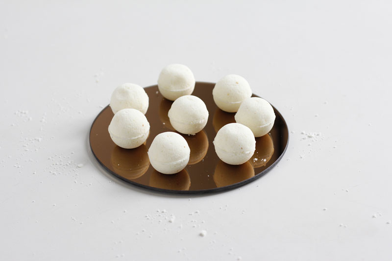 Wenn die Masse ausgehärtet ist, die Badepraline in die gefüllte Badewanne geben und schon beginnt sie sich langsam aufzulösen. Wenn ein paar Krümmel sich nicht auflösen wollen, einfach zwischen den Fingern zerdrücken. In Kombination mit dem Meersalz und dem Kokosfett wird die Haut auch noch schön gepflegt. Ihr könnt auch gerne statt dem Kokosfett Sheabutter ausprobieren. Wir wünschen auf jeden Fall eine schöne Entspannung mit diesen Badebömbchen!