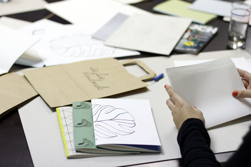 Notiz- und Skizzenhefte kann man immer gebrauchen. Wie man diese kleinen, praktischen Heftchen Selbermachen kann, haben wir gestern gemeinsam mit Maria Hack von Falz & Vorsatz bei unserem ersten Workshop zum Thema Buchbinden gezeigt. Die Teilnehmer konnten vor Ort verschiedene Notiz- und Skizzenhefte mit der einfachen Fadenheftung binden und wurden dabei auch ganz schön kreativ. Denn weiß man erst einmal wie das ganze vom Prinzip her funktioniert, kann man nicht nur beim Cover, sondern auch bei Heftung und Größe variieren und sein ganz individuelles Heftchen gestalten.