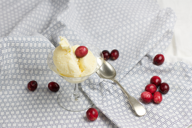 Wenn ihr keine Eismaschine Zuhause habt: Die abgekühlte Masse in eine Tiefkühldose oder in eine mit Klarsichtfolie ausgelegte Metallform einfüllen. Im Gefrierschrank über Nacht gefrieren lassen. Dann noch mit ein paar Cranberries garnieren und schon kann das Eierliköreis genossen werden.