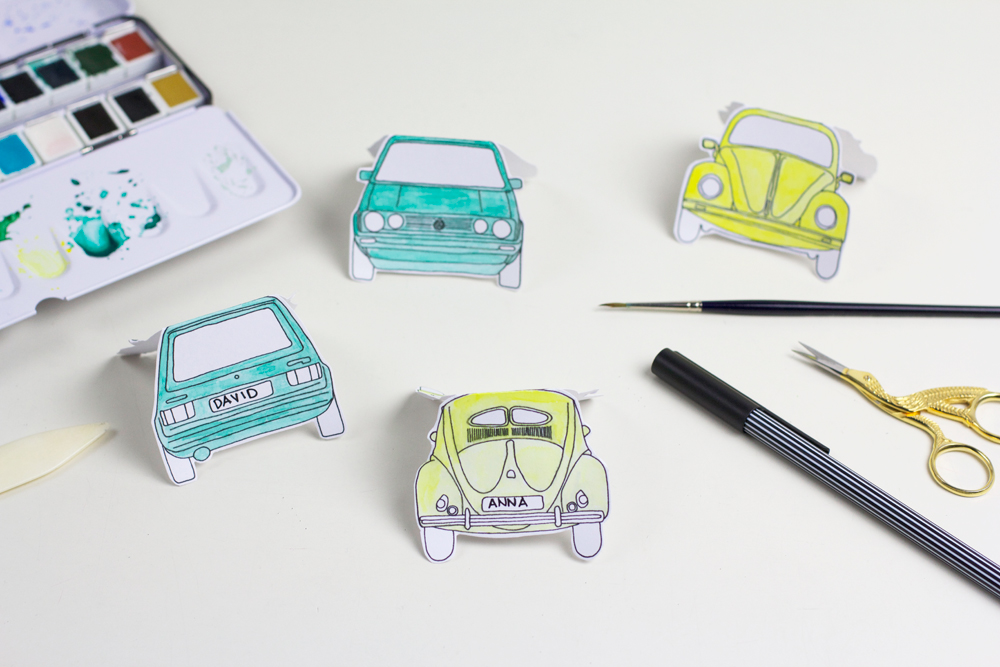 Wir lieben Motto-Partys! Sei es zu einem runden Geburtstag, ausgefallenen Hochzeiten oder anderen Anlässen. Da wir euch letztens gezeigt haben, wie man kreative Einladungen für Kindergeburtstage gestalten kann, folgen nun die passenden Tischkärtchen zum Ausmalen. Diese entzückenden Namensschilder in Form eines Volkswagen Käfers und Golf GTIs werden definitiv bei meiner nächsten Soiree zum Einsatz kommen, da ich mir dieses Jahr vorgenommen habe, wieder öfter Dinnerpartys für Freunde zu hosten.