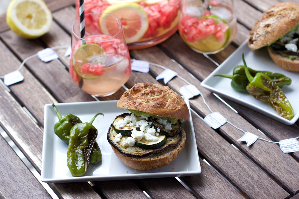 Kurz bevor das Grillgemüse fertig ist, könnt ihr noch eure Brötchen halbieren und ebenfalls für ein paar Minuten auf den Grill werfen. Wir haben uns für leckere Vollkornbrötchen entschieden, es muss also nicht immer das Brioche-Weckerl sein. Die Brötchen anschließend auf beiden Seiten mit Guacamole bestreichen und die Melanzani- und Zucchinischeiben darauf verteilen. Zum Schluss noch ein bisschen Feta darüber bröseln und fertig ist euer leckerer Burger.