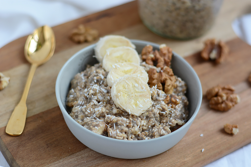 Haferflocken und Banane sind eine köstliche und gesunde Kombination, die es bei uns immer wieder auf den Frühstückstisch schafft. Sei es in Form eines leckeren Breakfast-Smoothies, oder eben als Overnight-Oats. Beide Varianten gehen super schnell, schmecken köstlich und sind der perfekte gesunde Start in den Tag. Overnight-Oats kann man in unzähligen Varianten zubereiten. Wir zeigen euch heute, wie wir unsere Banana-Overnight-Oats am liebsten essen. Viel Spaß beim Nachmachen!