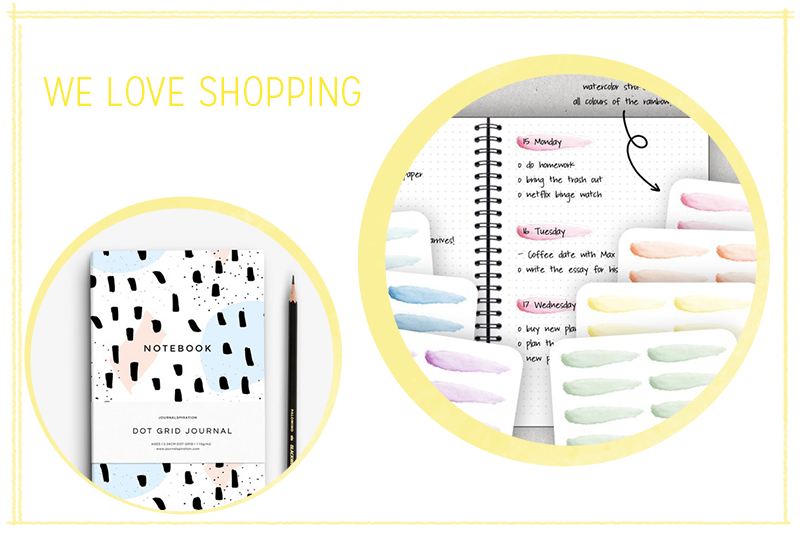 - Bei Journalspiration findet man generell viele großartige Sticker und Co. für’s Bullet Journaling. Richtig süß finden wir auch die Aquarell-Aufkleber. Die kann man irgendwie immer nutzen.