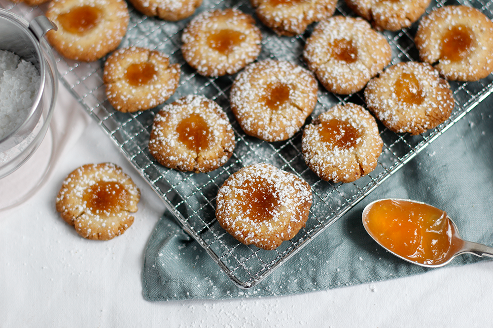 Dieses Jahr hatten wir endlich mal wieder Zeit so richtig viele Kekse zu backen. Kürbiskernkipferl, Linzeraugen, Schokokipferl, Rumkugeln und natürlich waren auch ein paar glutenfreie Husarenkrapfen dabei. Dass es gar keine große Hexerei ist, weihnachtliches Keksgebäck glutenfrei zuzubereiten, haben wir nach einer kleinen Experimentierphase auch schnell gelernt. Einfach das normale Weizenmehl gegen euer präferiertes Mehl wie Kokos-, Reis- oder Mandelmehl austauschen und mit einem TL Guarkernmehl mischen. So klappt es ganz bestimmt! Diesmal haben wir glutenfreie Husarenkrapfen gemacht und können sagen, dass sie mit der leckeren Marmelade eine tolle und vor allem schnelle Abwechslung zu Linzeraugen oder Spitzbuben sind.