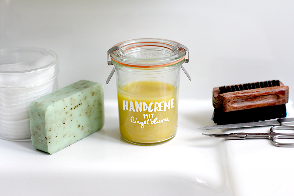 Aufgrund der entzündungshemmenden Wirkung kommt die Ringelblume oft in der Naturkosmetik zum Einsatz. Sie beruhigt raue und entzündete Haut und eignet sich daher bestens für unsere Handcreme. In selbst gemachten Seifen können die hübschen Blütenblätter auch als optischer Hingucker dienen. Wir wünschen auf jeden Fall viel Spaß beim Ausprobieren!