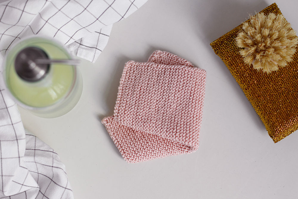 Das fertige Abwaschtuch aus Baumwollgarn ist bei 60°C waschbar. Da man Abwaschtücher generell regelmäßig auswechseln sollte, werden wir uns noch 3-4 weitere Tücher stricken. So sind immer genug da!