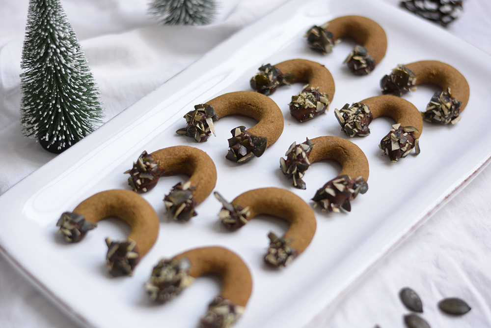 • Wir finden, es müssen nicht immer die klassischen Vanillekipferl sein. Daher wollen wir euch heuer mal diese veganen Kürbiskernkipferl ans Herz legen. Sie gehen super schnell und in Schokolade getaucht sind sie einfach himmlisch.