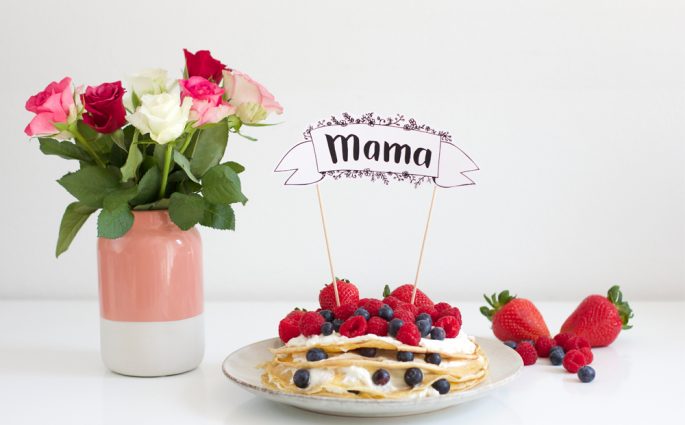 Ihr wisst noch nicht, was ihr eurer Mama zum Muttertag schenken wollt? Ein selbst zubereitetes Frühstück mit einem Muttertagskuchen inklusive Cake-Topper darüber freuen sich Mamas bestimmt. Ihr könnt den Topper natürlich selber gestalten, aber für alle die Last-Minute noch ein Geschenk brauchen, haben wir die Lösung: unseren Muttertag Cake-Topper als Freebie. Ihr braucht: