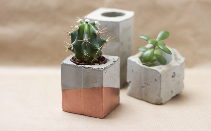 Für unsere Zement-DIY-Reihe haben wir auch Vasen beziehungsweise Übertöpfe in unterschiedlichen Höhen gemacht. Für diese Vasen haben wir einfach alte Getränkekartons verwendet und unterschiedlich hoch befüllt. Dann noch mit der Kupferfarbe besprüht wird das DIY Stück zum trendigen Designobjekt. Ihr braucht: Getränkekarton 2 Teile schnelltrocknender Zement 1 Teil Wasser Schüssel