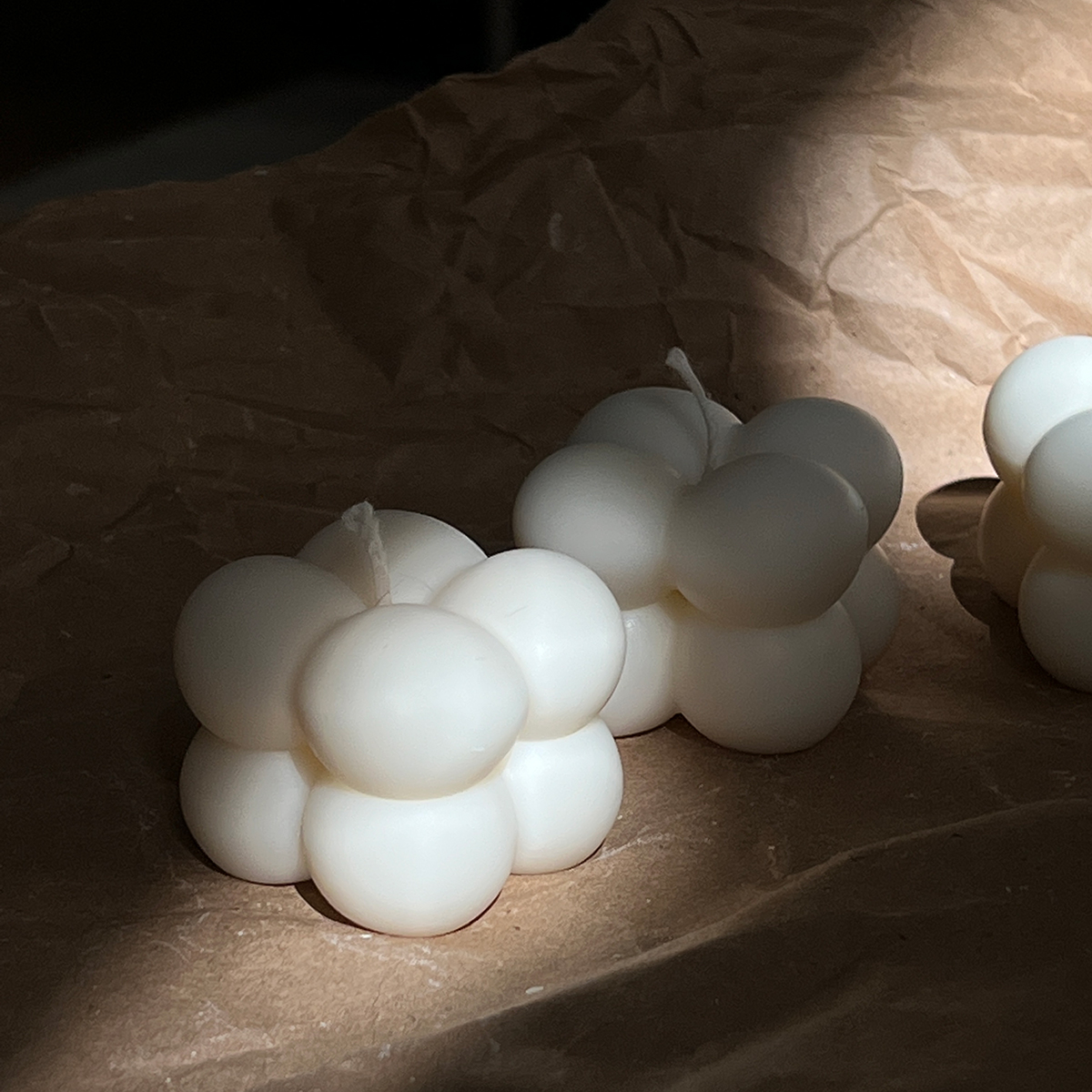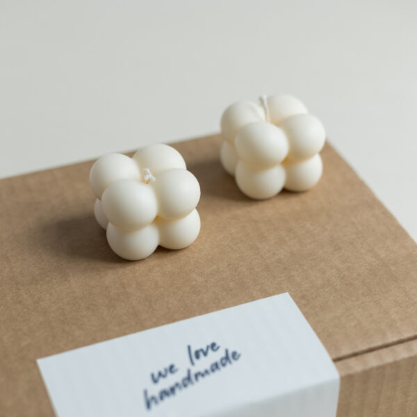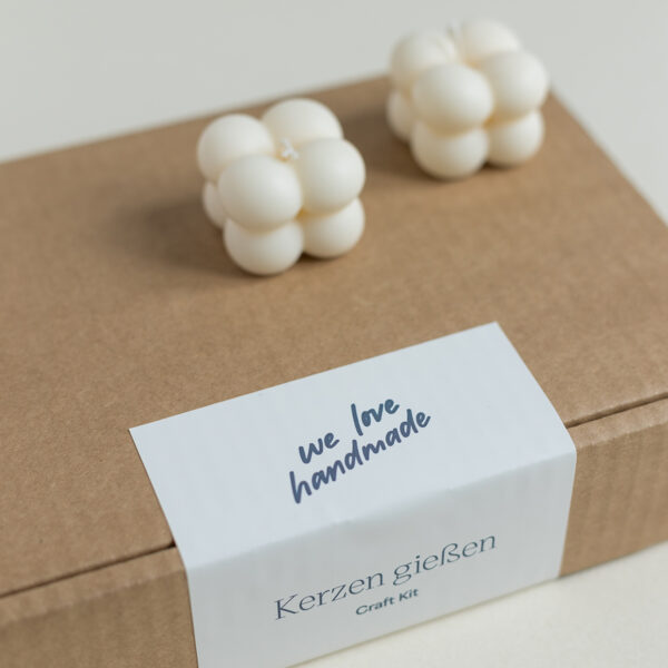 Das Craft Kit umfasst alle Materialien, die du zur Gestaltung von insgesamt 10 Mini-Bubble-Kerzen benötigst. Das Craft Kit ist als Starter-Kit zu verstehen und perfekt für Anfänger geeignet. Im Onlineshop findest du auch unsere „Kerzen gießen“-Refill-Packages — 500 g Rapswachs und 10 Dochte — für weitere 10 Mini-Bubble-Kerzen.