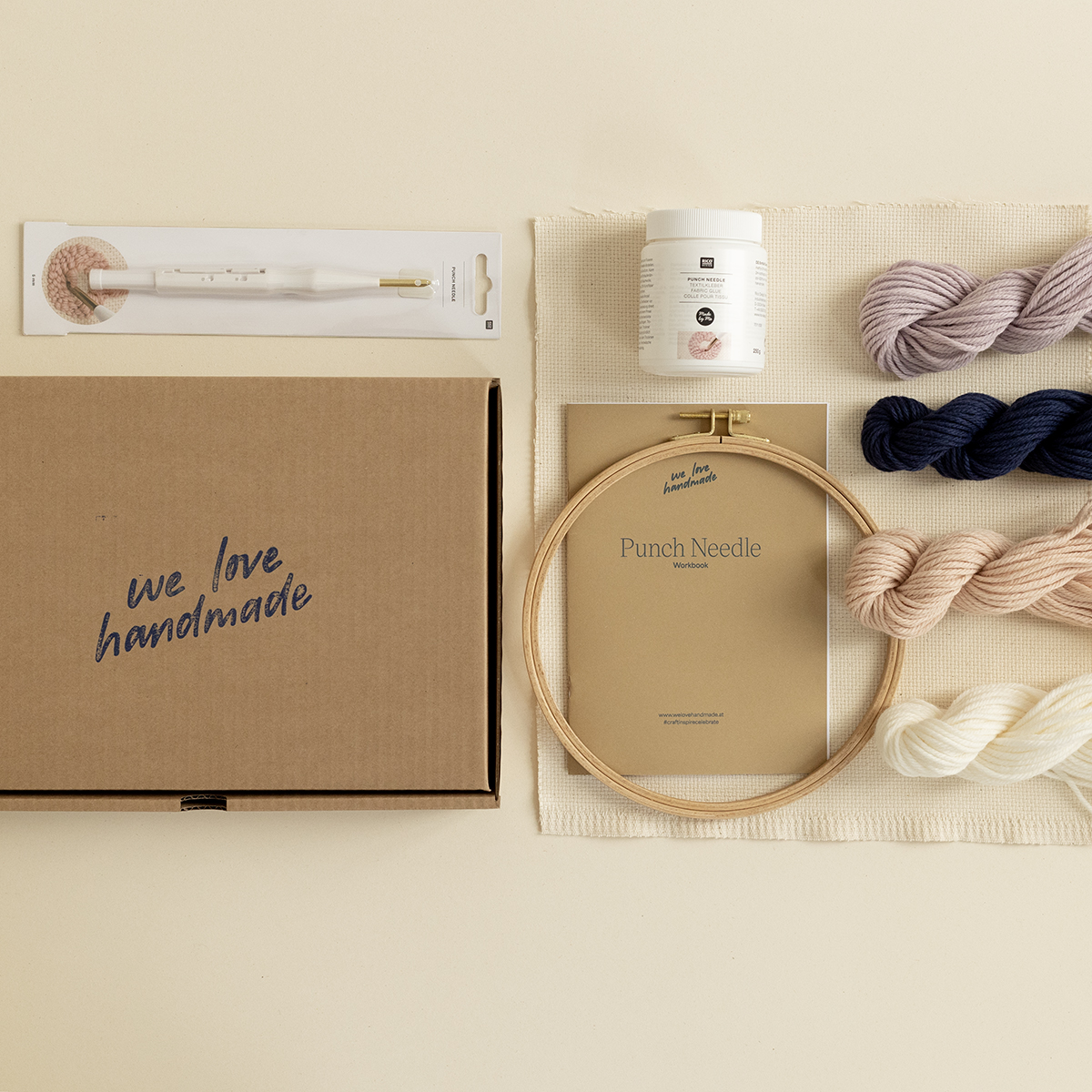 Wir lieben Sticken! Entdecke die faszinierende Welt des Punch Needling mit unserem brandneuen Craft Kit „Punch Needle“ von we love handmade! Mit diesem Kit tauchst du ein in die Kunst des textilen Handwerks und kannst wunderschöne textile Kunstwerke gestalten. Dieses Craft Kit enthält alle Materialien sowie ein ausführliches Workbook mit Vorlagen, um sofort loszulegen.