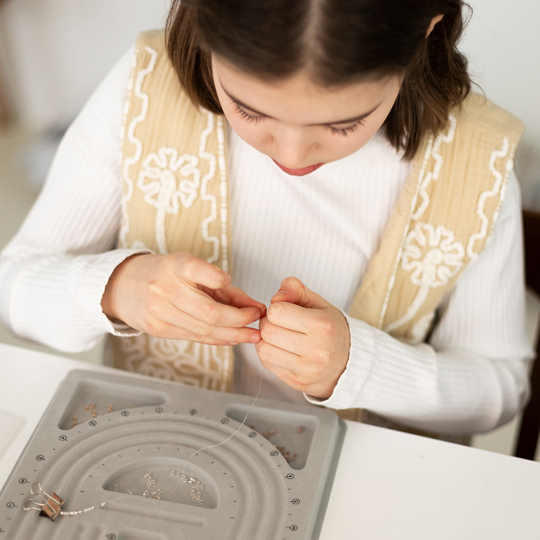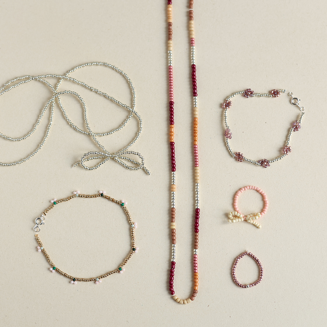 Ob Bag Charms, Armbänder, Ketten oder Ringe – mit einer großen Auswahl an Perlen in verschiedenen Farben, Formen und Materialien sowie hochwertigem Zubehör (Schmuckdraht, Verschlüsse, Zangen und mehr) gestaltet ihr gemeinsam individuelle Accessoires.