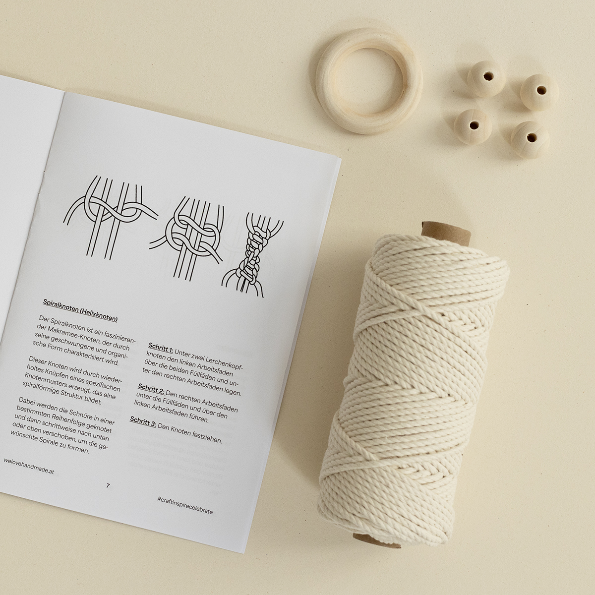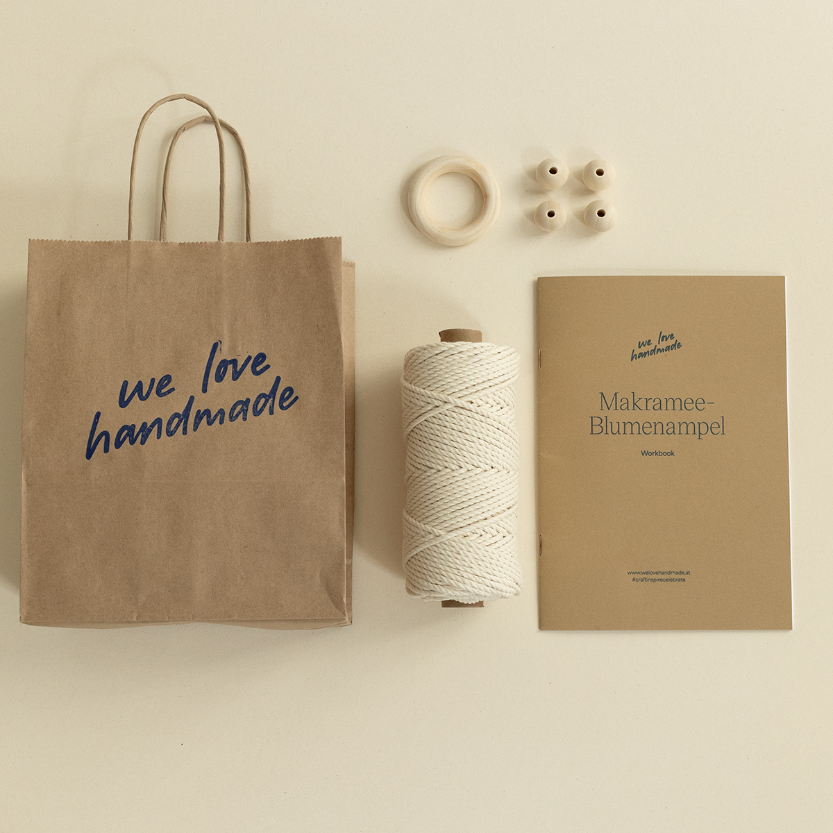 Makramee liegt im Tend! Als Makramee bezeichnet man eine spezielle Knüpftechnik, mit der man die unterschiedlichsten Dinge umsetzen kann. Denn kennt man erstmal die wichtigsten Knoten, lassen sich im Handumdrehen Armbänder, Wandteppiche, Blumenampeln und Co. knüpfen. Mit unserem we love handmade Craft Kit lernst du Schritt für Schritt die wichtigsten Makramee-Knoten und kannst direkt loslegen. Das Craft Kit umfasst nämlich alle Materialien, die du zur Umsetzung einer Blumenampel benötigst, sowie eine ausführliche DIY-Anleitung mit den wichtigsten Knoten und vielen Tipps & Tricks.