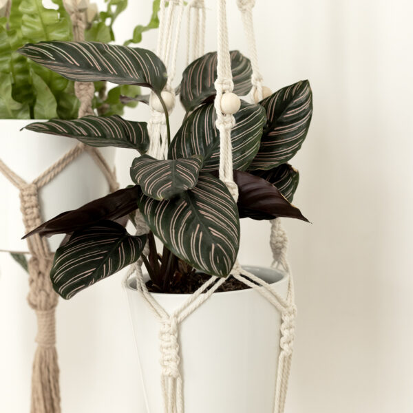 - 55 Meter Baumwoll-Kordel (Stärke: 3 mm) in der gewünschten Farbe für 1-2 Makramee-Blumenampeln. Die Makramee-Kordel werden in Deutschland gefertigt und bestehen aus 100% Baumwolle. Die gedrehte Kordel ist besonders bei Anfänger:innen ideal und hat circa 190 g.