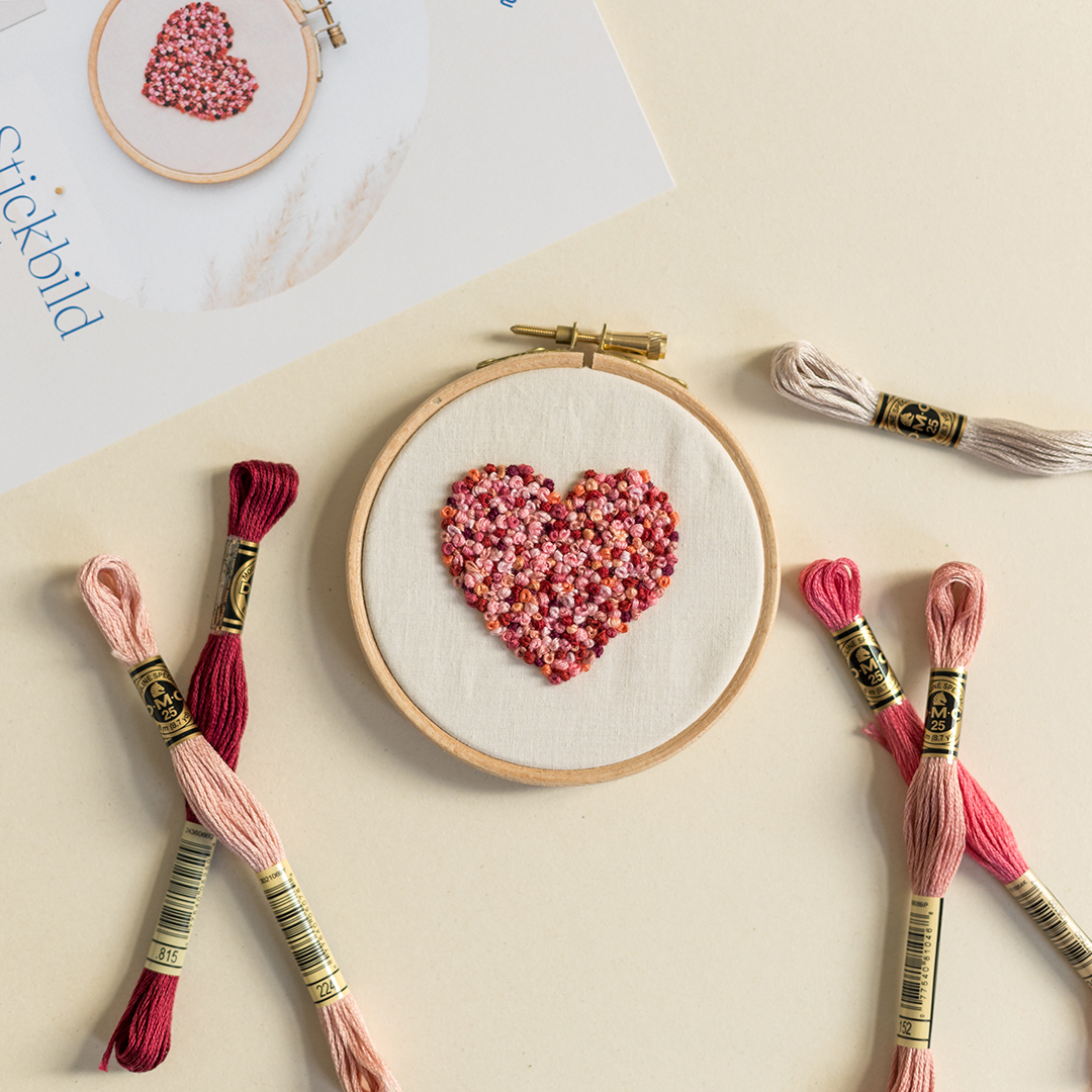 Das Craft Kit Stickbild „Herz“ umfasst: