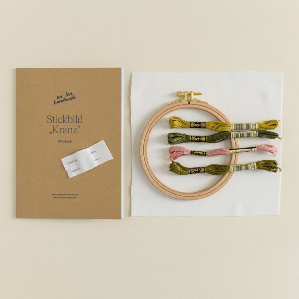 Das Craft Kit „Stickbild Kranz“ umfasst: