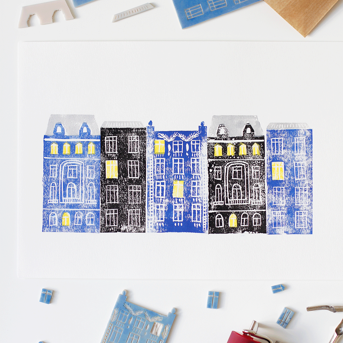 • How to design and transfer your own motif onto rubber and linoleum