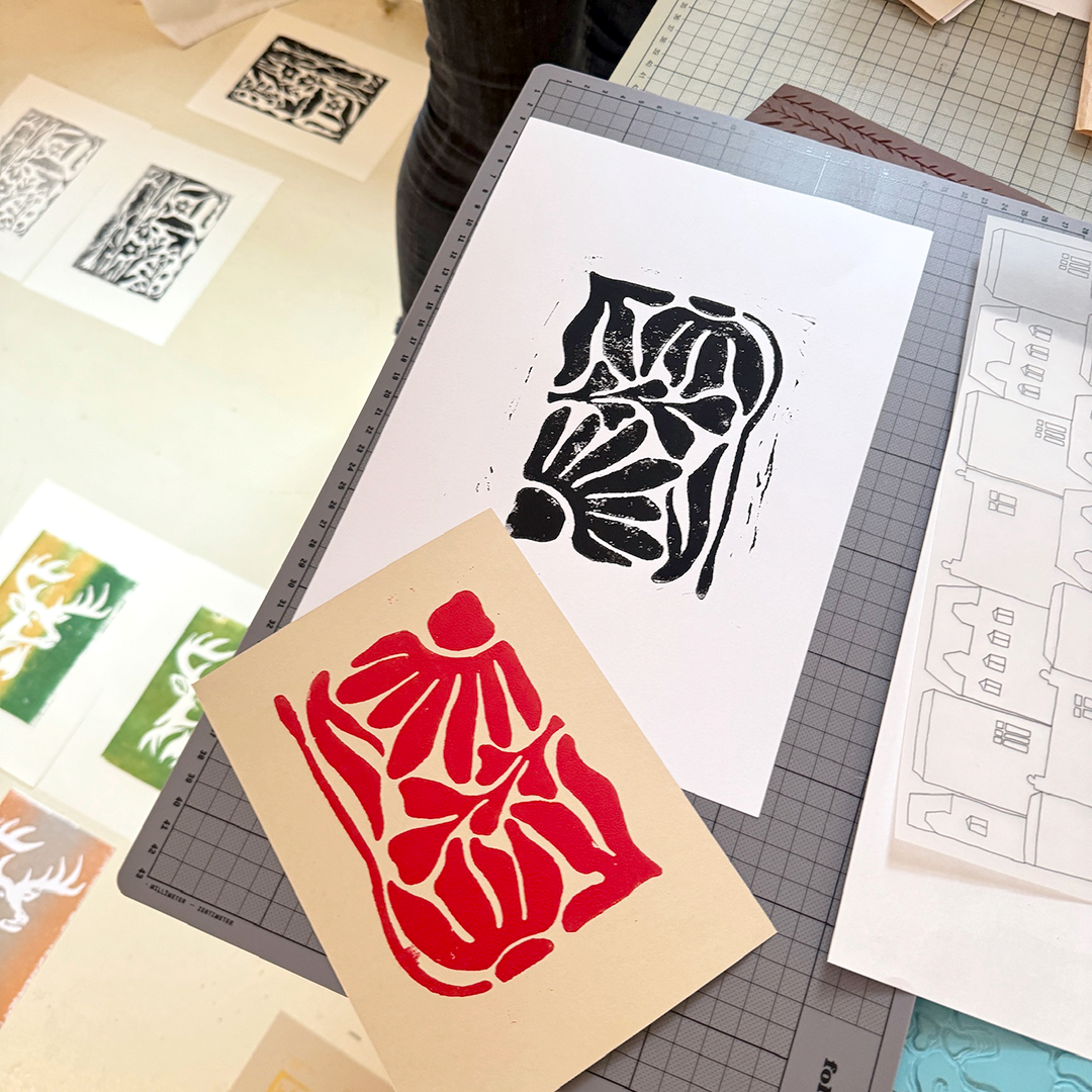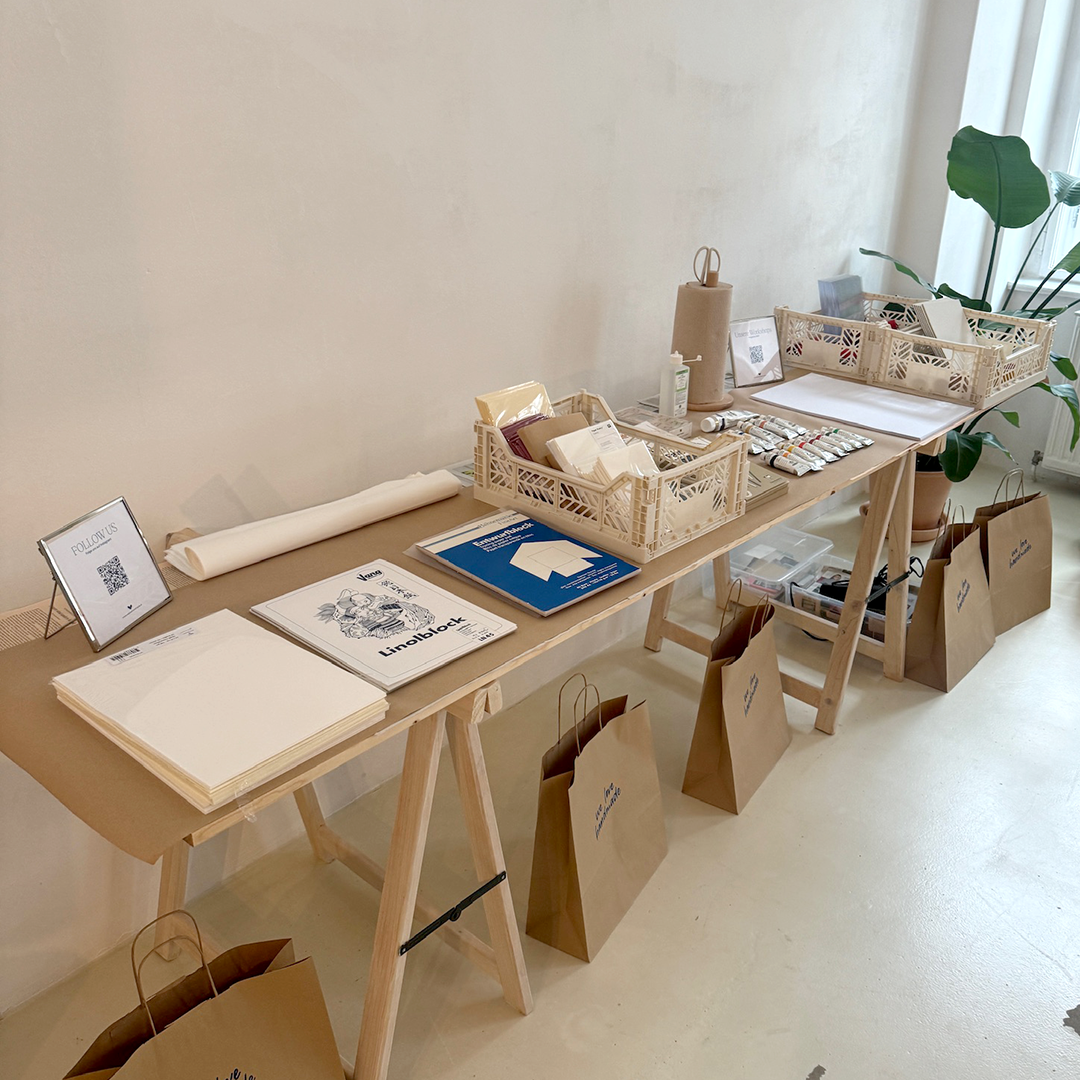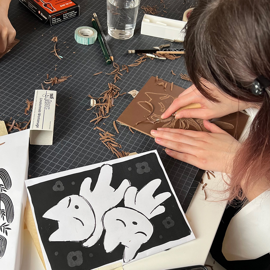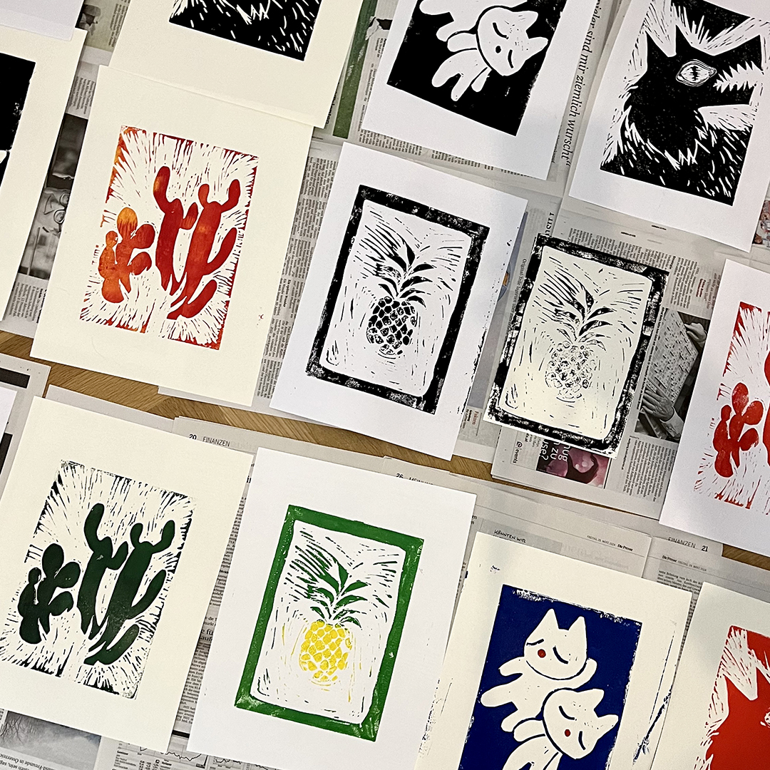 Under professional guidance, you’ll be taken step by step through the entire linocut printing process—from choosing a motif to carving and printing your own unique designs. All materials are provided, so you can fully focus on your creative process. Each participant will create their own linocut design and print small-format art prints.