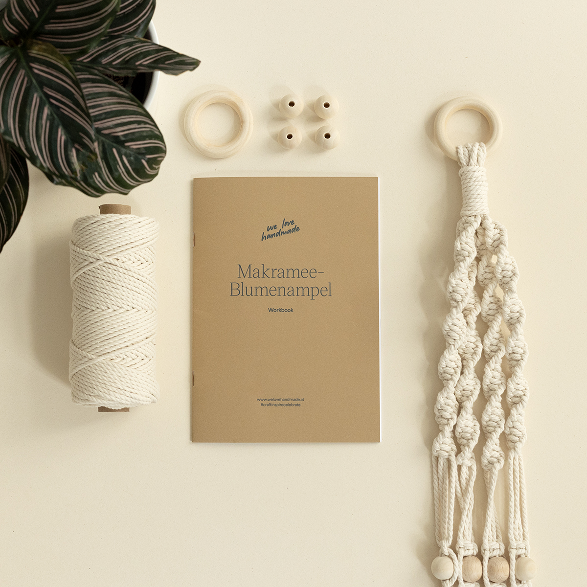 - Material-Kit plus Workbook zum Thema Makramee. Vor Ort in gedruckter Form und nach dem Workshop in digitaler Version als PDF per E-Mail.