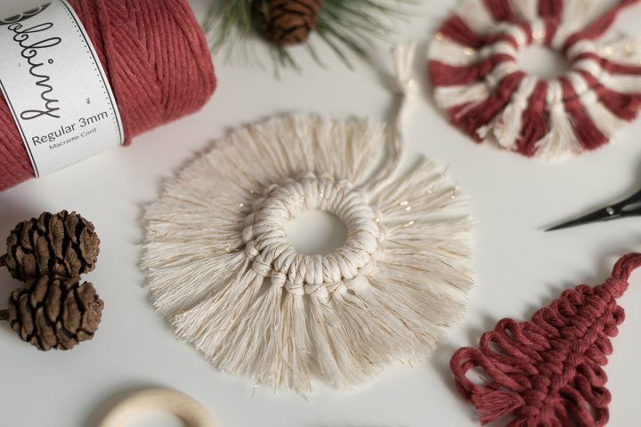 (Werbung: Dieser Beitrag enthält Produkte aus unserem we love handmade Webshop.) In den vergangenen Jahren haben wir bereits verschiedensten Baumschmuck umgesetzt: Schneeflocken aus Bügelperlen, Zuckerstangen aus Filz, Sternanhänger aus Clay und sogar Anhänger aus Draht. Es war also wirklich einiges dabei. Was aber bisher noch gefehlt hat, sind Makramee-Anhänger. Davon